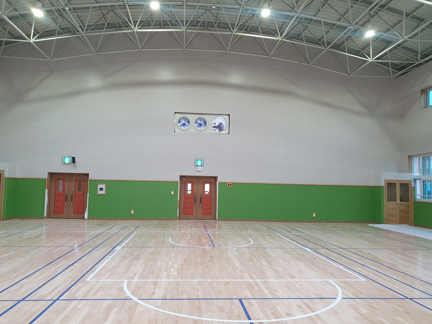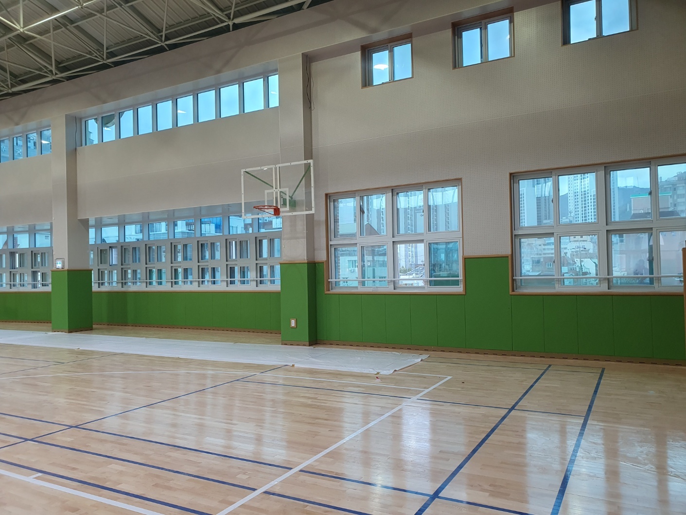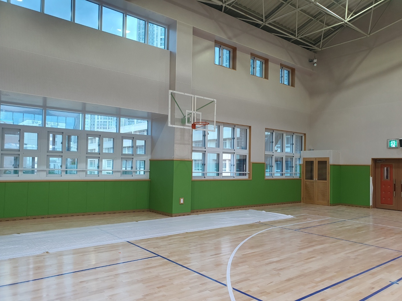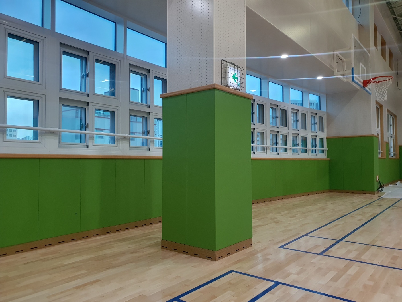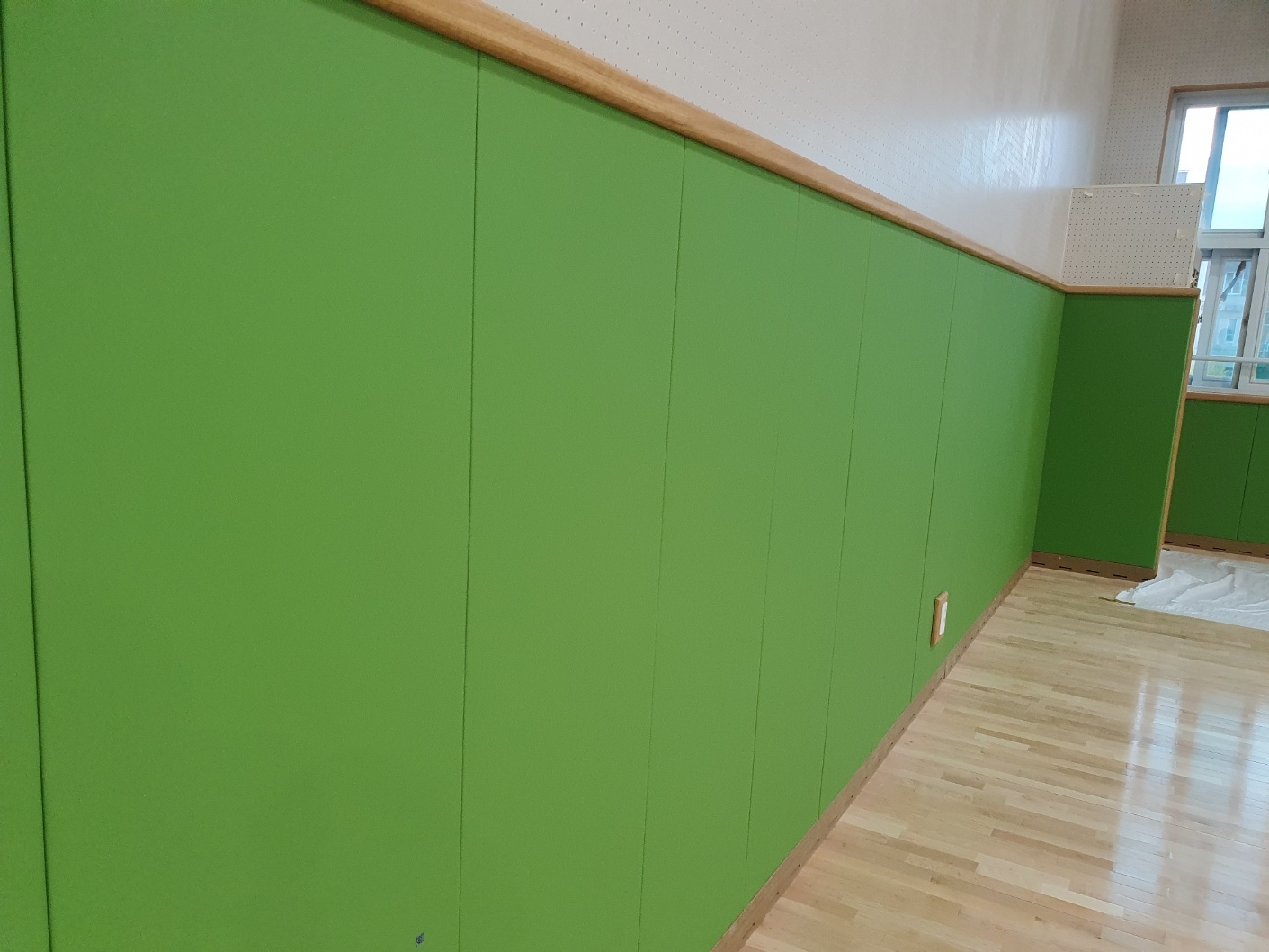 부산여명중학교 체육관 안전 준불연 레자 벽 시공